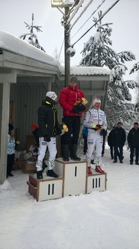 Miesten sarjan kolme parasta palkintojenjaossa (Kuva: S. Karvonen) |