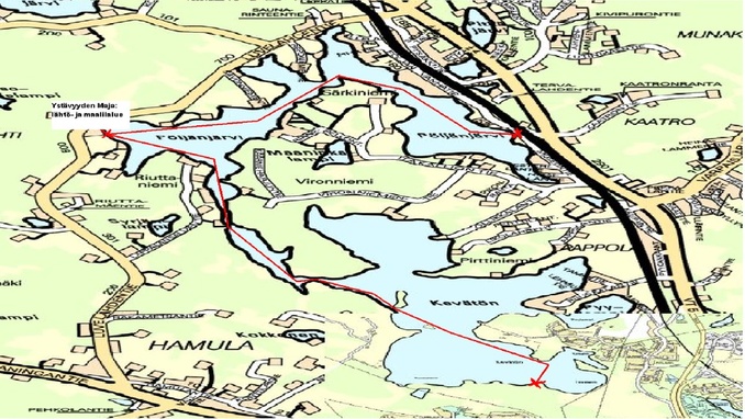 | Lähtö ja maali | Lähtö ja maali sijaitsevat Ystävyyden Majan rannassa. Lähtö yli 16v sarjoilla klo 11.00/sarjat 8-10 klo 11.15/sarjat 12-16 klo 11.30. Lähdössä edetään ensimmäinen 30 metriä tasatyönnöin rannan tuntumassa merkittyyn rajaan asti. Lähdössä 25 kilometrillä nuoremmat ja kilpasarjat eturiviin ja 1/3 kilometrillä vanhemmat sarjat eturiviin. |